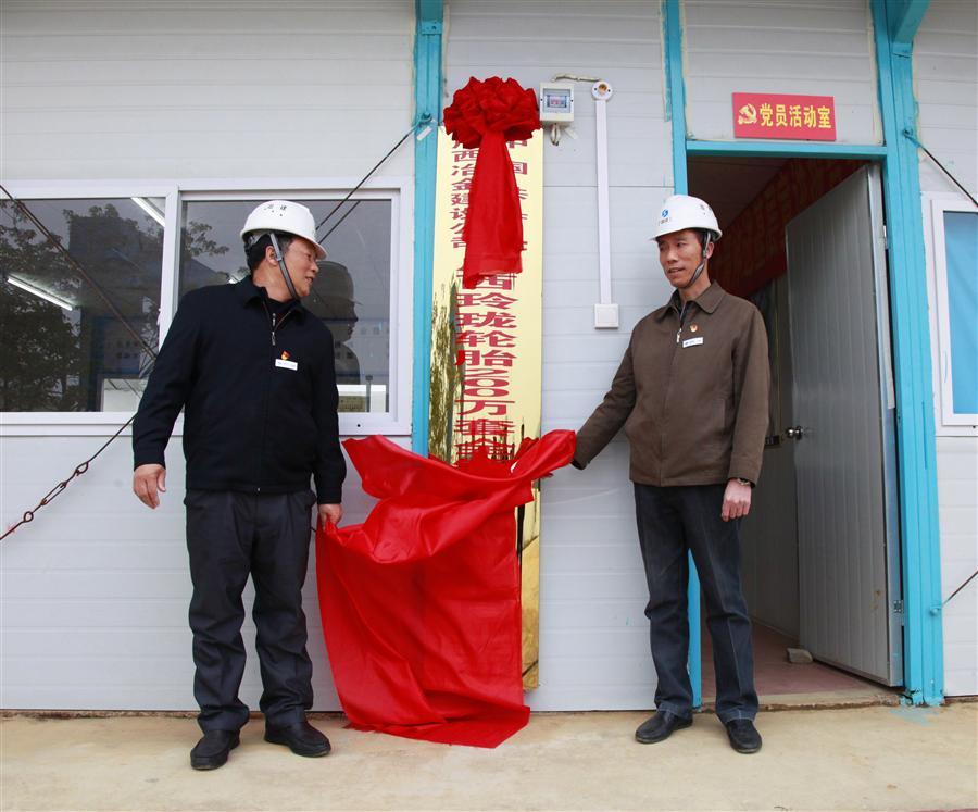 1月17日,中共廣西冶金建設(shè)公司廣西玲瓏輪胎200萬套全鋼主車間工程項(xiàng)目部支部成立揭牌儀式,公司黨委書記、副總經(jīng)理張濟(jì)璜出席儀式,并與項(xiàng)目部黨支部書記楊慈聯(lián)共同為黨支部揭牌。