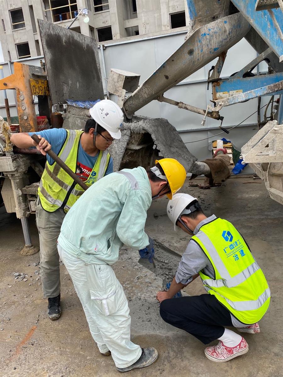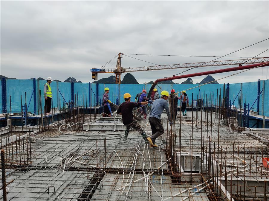 馬達(dá)聲、電鉆聲轟鳴,混凝土攪拌車、混凝土泵車、材料運(yùn)輸板車、土方綠皮車來(lái)往穿梭,綁扎鋼筋、混凝土塌落度試驗(yàn)、澆筑混凝土、升爬架前驗(yàn)收等工作有條不紊進(jìn)行,這是第四分公司融創(chuàng)江南林語(yǔ)項(xiàng)目的趕工現(xiàn)場(chǎng)。