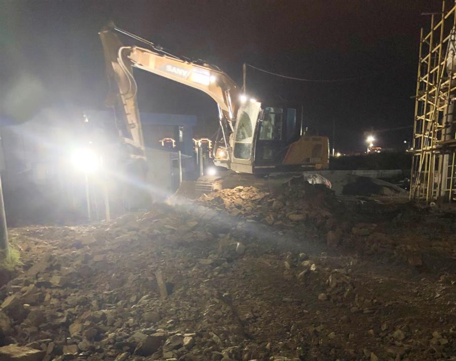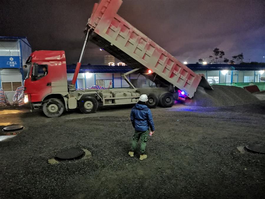 為全力沖刺四季度,項(xiàng)目部實(shí)行“快馬加鞭、保質(zhì)保量、人停機(jī)不停、晝夜料不停!”的搶工模式,在保證安全和質(zhì)量的前提下,項(xiàng)目部全體成員搶抓施工黃金期,全力以赴推進(jìn)項(xiàng)目建設(shè)。為加快項(xiàng)目建設(shè),項(xiàng)目部反復(fù)討論研究制定了科學(xué)的施工計(jì)劃,合理安排人力物力。面對(duì)晚間要拉運(yùn)回填土方和石料的問題,項(xiàng)目部采取人員輪流值班,料來人在,統(tǒng)一指揮的措施,做到合理配置堆放,減少二次運(yùn)輸,提高工作效率。