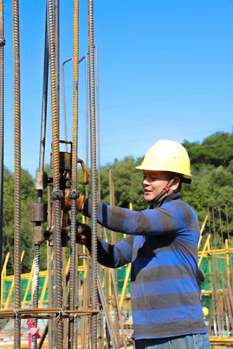 11月10日,在第二分公司承建的三門江林場業(yè)務及配套服務用房回建項目現(xiàn)場,工人們有條無紊地安裝模板、搭設支架、綁扎鋼筋......現(xiàn)場一派大干快上、熱火朝天的景象。