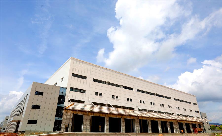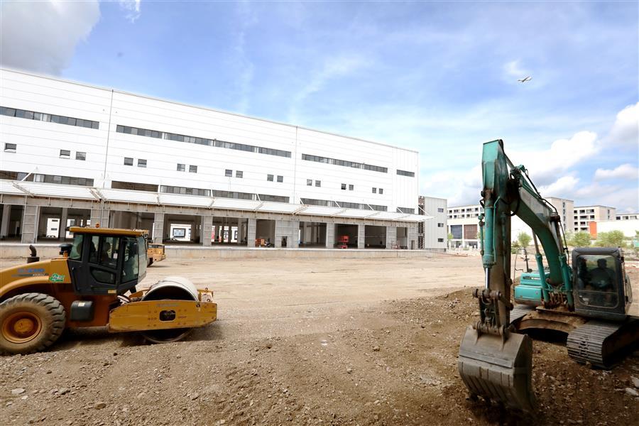 該項目負(fù)責(zé)人莫劍生介紹,倉儲配一體庫主要建設(shè)6棟庫房,目前項目主體基本建成,正緊張有序收尾。為了加快項目進(jìn)度,項目部在做好防暑降溫、安全施工等保障措施的同時,采取多班組、多工種在不同的庫房交叉作業(yè),目前工地上有七八個班組在施工,施工內(nèi)容包括外立面、擋雨棚、通風(fēng)管、地面硬化施工等。