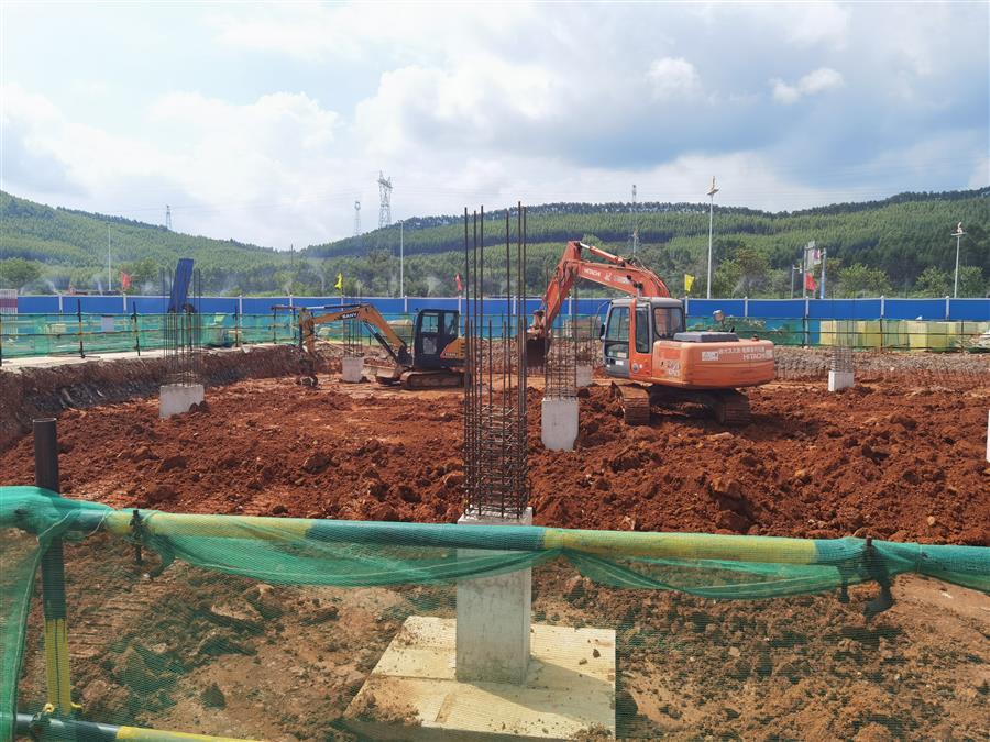 目前,地塊一的1#物流分撥中心正在進(jìn)行基礎(chǔ)墊層、承臺(tái)澆筑和支模架搭設(shè),3#現(xiàn)貨交易中心正在進(jìn)行基礎(chǔ)柱澆筑和土方夯實(shí)回填;地塊二的兩個(gè)廠房也在進(jìn)行土方開(kāi)挖作業(yè)。由于兩個(gè)地塊同時(shí)進(jìn)行作業(yè),項(xiàng)目施工需要投入較大的人力物力材力。