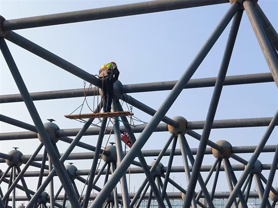 項(xiàng)目總建筑面積4.46萬平方米,建設(shè)內(nèi)容為文化會展中心和英德茶文化博物館(含紅茶研發(fā)中心、檢測中心和交易中心)等。目前,項(xiàng)目正在進(jìn)行網(wǎng)架拼裝、加焊、焊接囗打磨、鋼球刷漆等工作,鋼結(jié)構(gòu)施工進(jìn)度為65%。