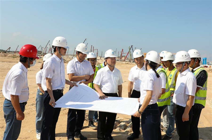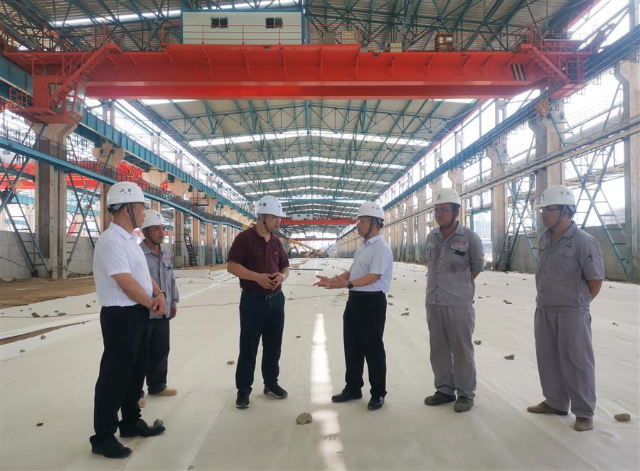 覃振華在防城港鋼鐵基地項目(一期)廢鋼處理系統(tǒng)金屬材料加工配送中心廠房及公輔設(shè)施建設(shè)項目現(xiàn)場了解情況