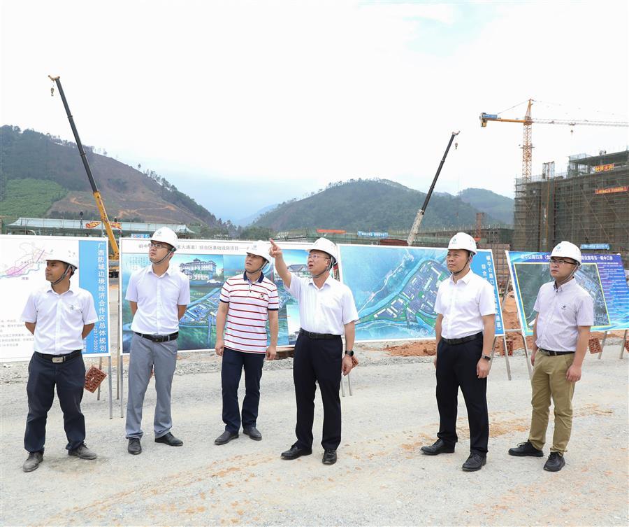 覃振華在峒中公路口岸(含里火通道)綜合區(qū)基礎(chǔ)設(shè)施項目指導(dǎo)工作
